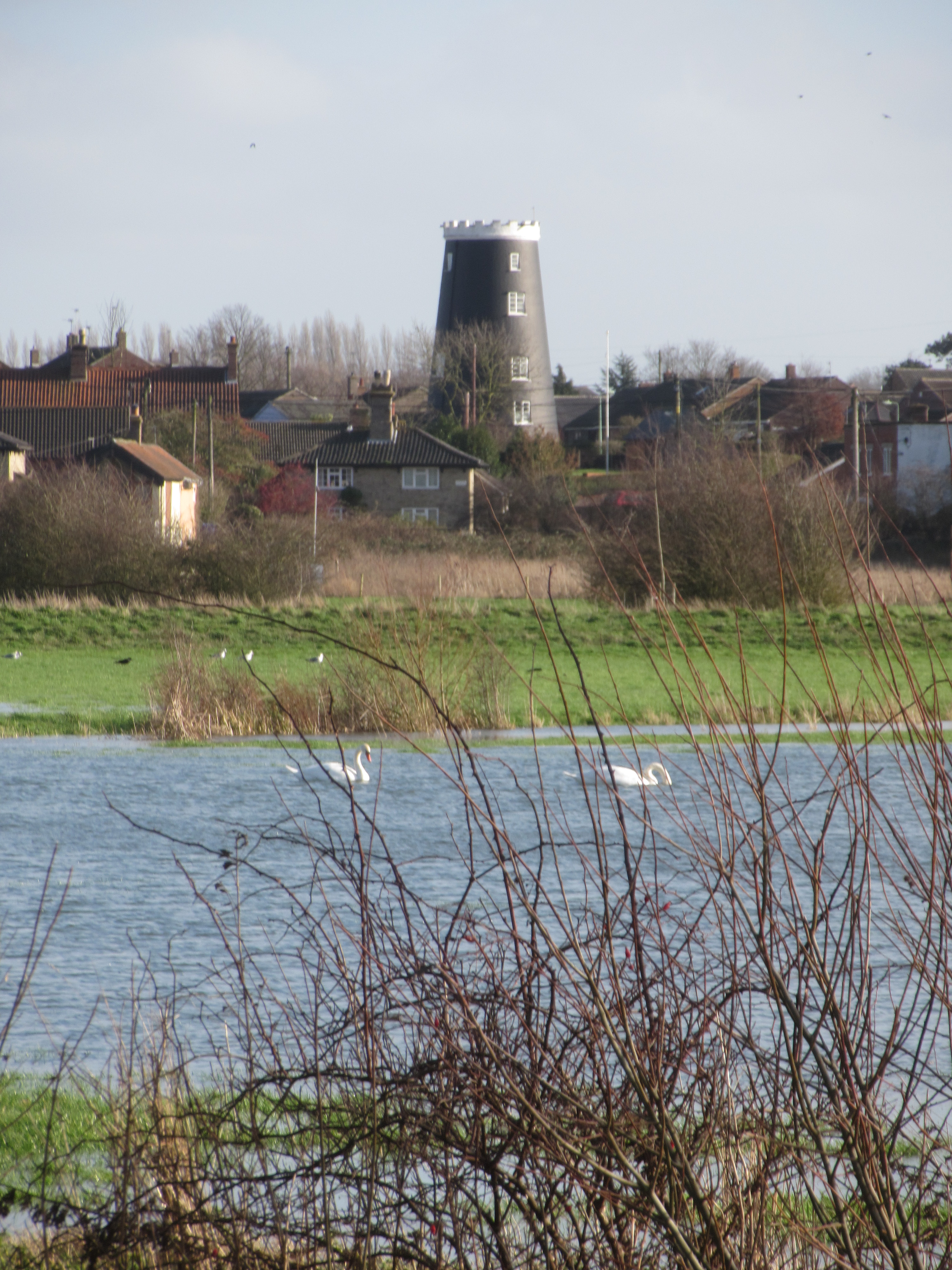 And finally just to walk. On this occasion wandering just outside the town through the flooded water meadows that lap right up against the edge of the houses but hardly ever enter, even in the worst winters because our forebears chose this place to sit above the River Waveney, not in it. Thank goodness no property developers have ever convinced the council to let them build across our great views, fortunately Bungay has not suffered in the great floods of 2014 despite the waters visibly rising in front of our eyes. We are as serene as the swans that migrate here in the winter.