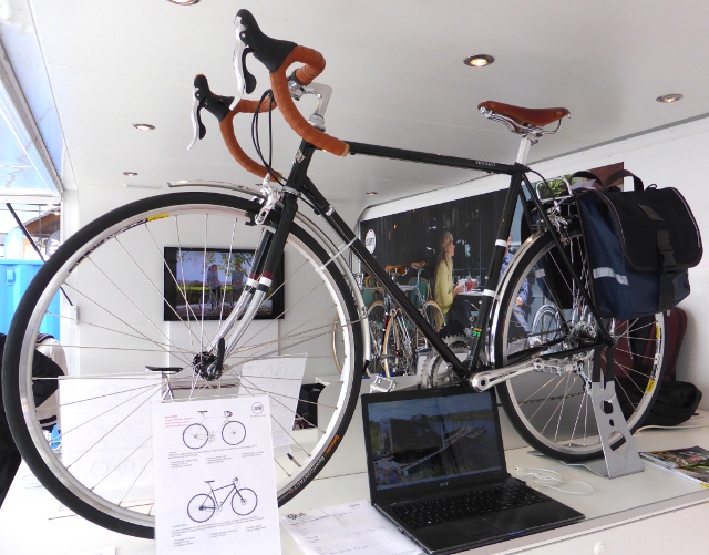 I hadn’t spotted it until the show guide gave an overview but scattered round the show a number of manufacturers had produced new touring bikes which they classed as randonneurs. The European touring market is dominated by so called trekking bikes, a hybrid of the mountain bike and the touring bike, equipped for longer rides and panniers. Far fewer manufacturers build something modelled on the British or American tourer with a lightweight road frame and dropped handlebars but this year I saw several, again with modernised accessories but the classic shape. As the proud owner of a Dawes Super Galaxy this is my kind of touring bike, built for mountain passes as well as well as long distance cycle paths.