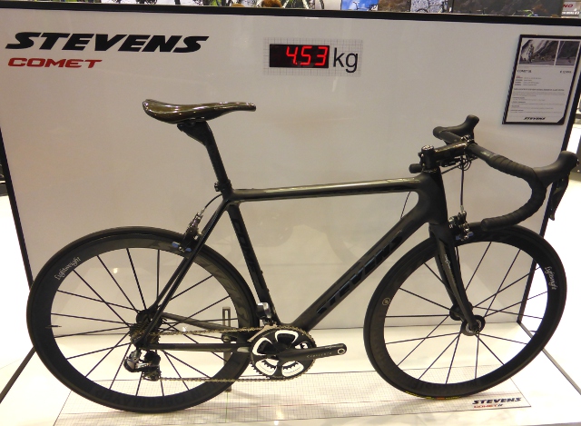 On the road bike front the endless quest for lightness and stiffness continues. Stephens put this 4.5kg bike on their stand connected to a weighing gauge. It was so light that every time somebody sneezed nearby the weight fluctuated. If I ever imagined owning one the idea that I could double the weight of my bike after a heavy meal and few beers would only haunt me when I looked at the credit card bill.