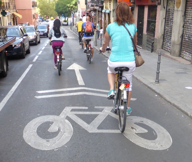 Cyclists priority street in Madrid Published September 28, 2014 at 640 × 540 in Cycling in Madrid – great potential but major frustrations