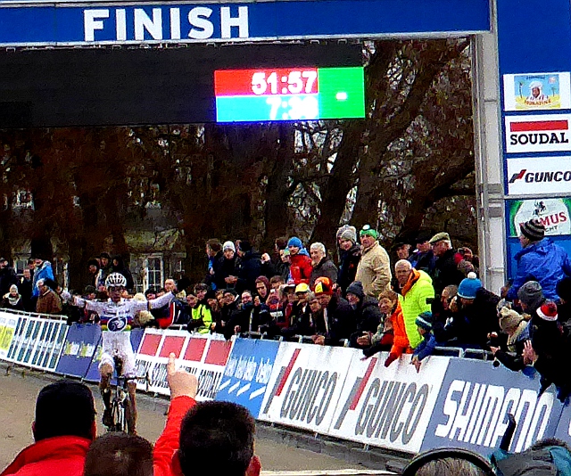 A World Cup event also means a more cosmopolitan audience than the usual hardened Flemish crowd, the international teams had also brought their supporters which meant we could pick out Spanish, American and Italian voices in the crowd among the Flemish (Dutch) cheers. Last year Francis Mourey from France won which also meant a very strong contingent from our neighbours to the south.