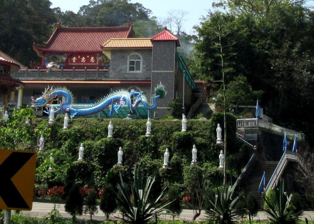 Again it was another 20km of descending, right down into the edge of Taichung. The last 10km into the city where it flattened out we had a great time, hardly dropping below 40km per hour except for traffic lights. To make it even better we passed sights like this glorious temple by the roadside, it had me slamming on the brakes to take photos even in the middle of the high speed chase.