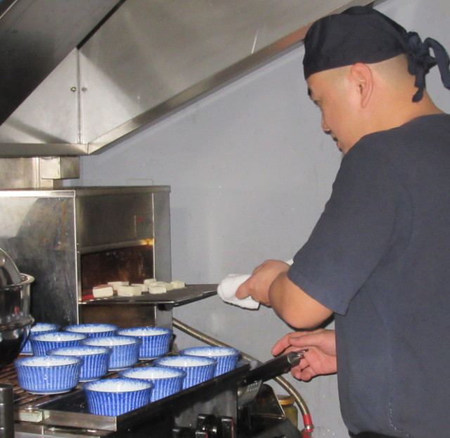 Grilling tofu for red bean dessert Taipei Published April 12, 2017 at 640 × 623 in Highlight of Taipei without cycling – food with friends!