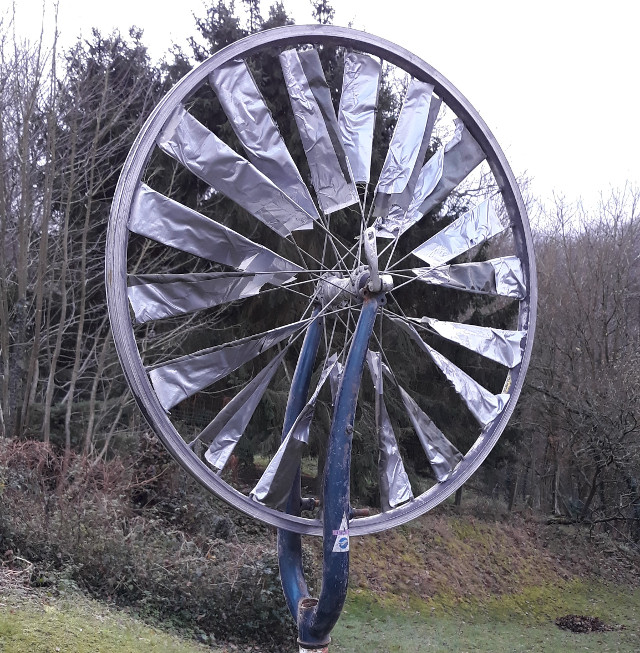 recycled bicycle wheel to windmill Published December 13, 2019 at 640 × 653 in Cycling recycling – a new opportunity? Copyright photo Kevin Mayne